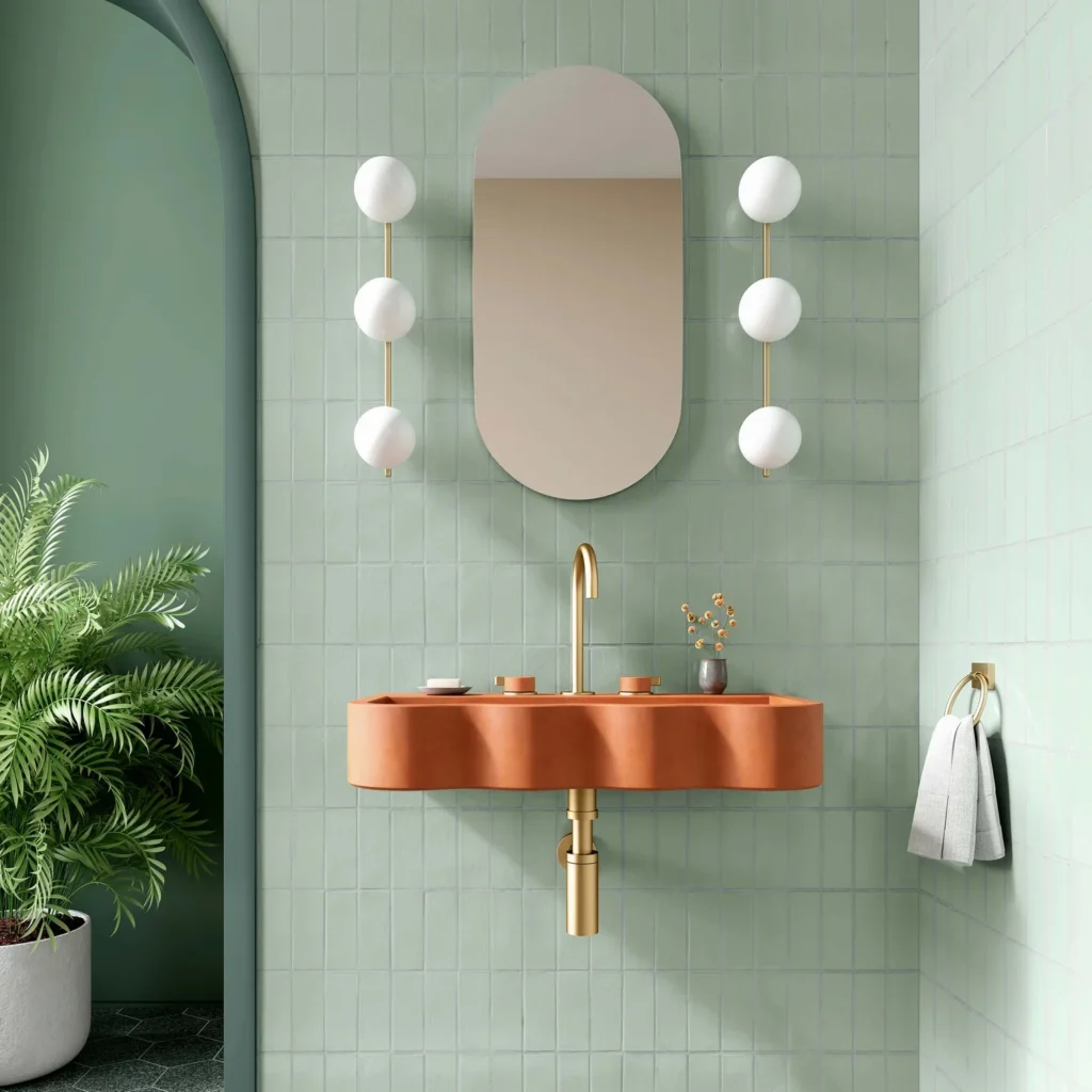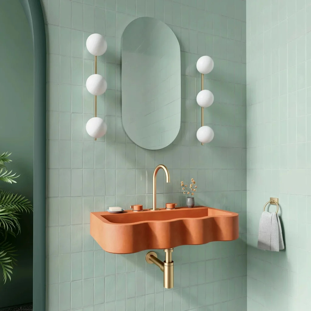 Funktionales und praktisches Waschbecken, besonders geeignet für Projekte mit begrenztem Platz und Badezimmer, die trotz ihrer Größe nicht auf Design verzichten möchten.