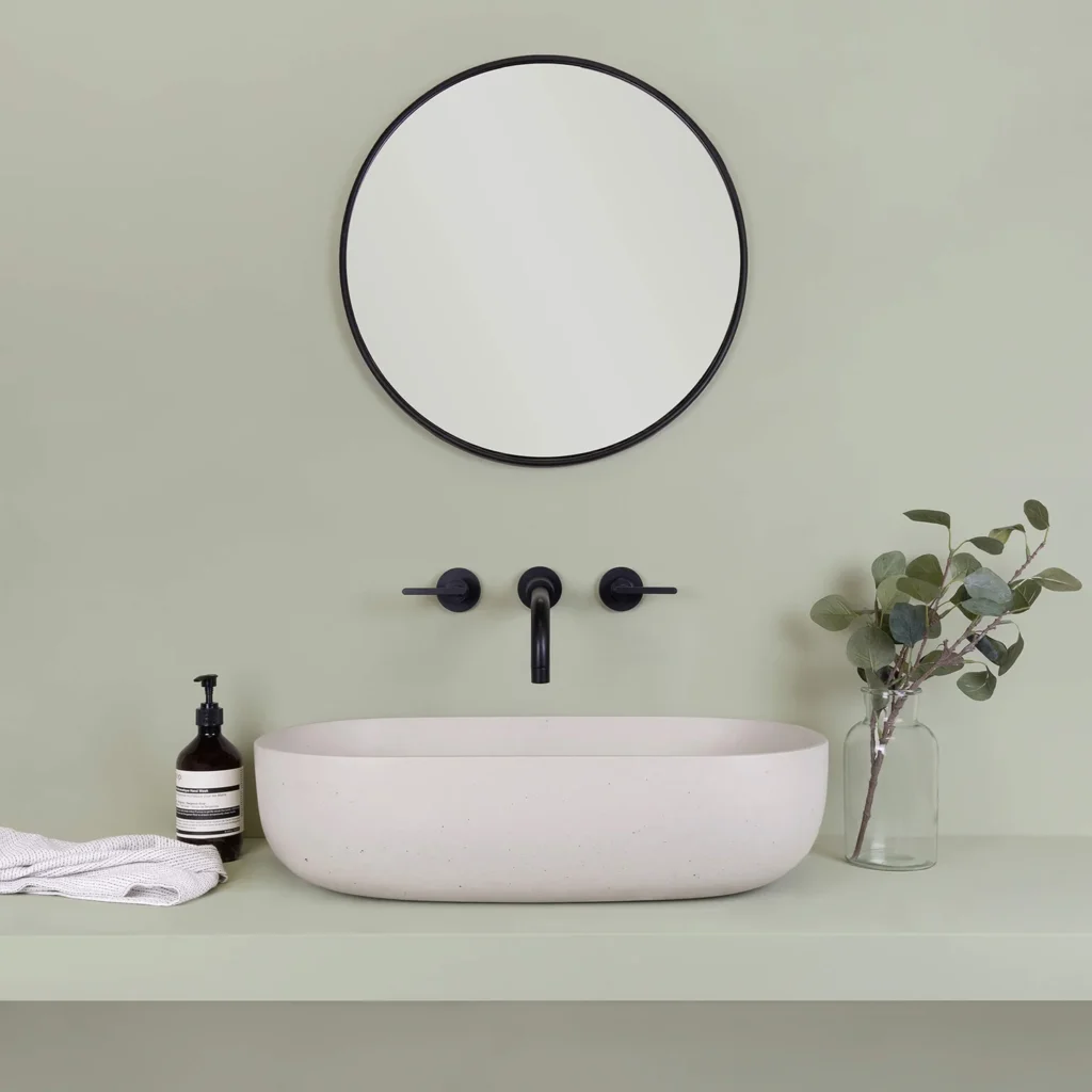 Vielseitiges Aufsatzwaschbecken mit schlichter runder Form, zeitlos und anpassungsfähig im Stil, fügt jedem Badezimmer schlichte Eleganz hinzu. In 28 Farben erhältlich, hergestellt in Großbritannien.