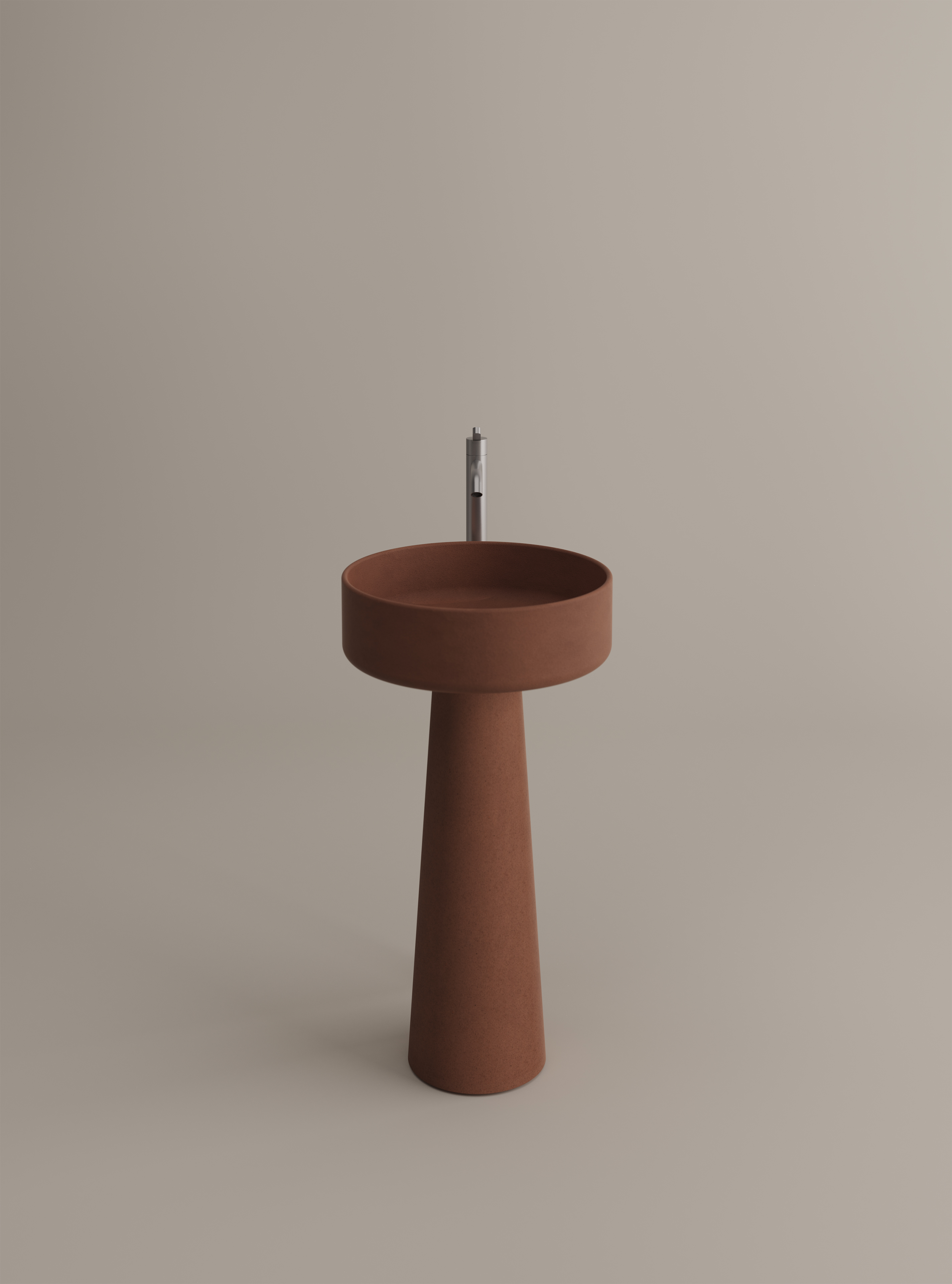 Als Standwaschbecken mit zylindrischem Fuß und als Aufsatzwaschbecken erhältlich
