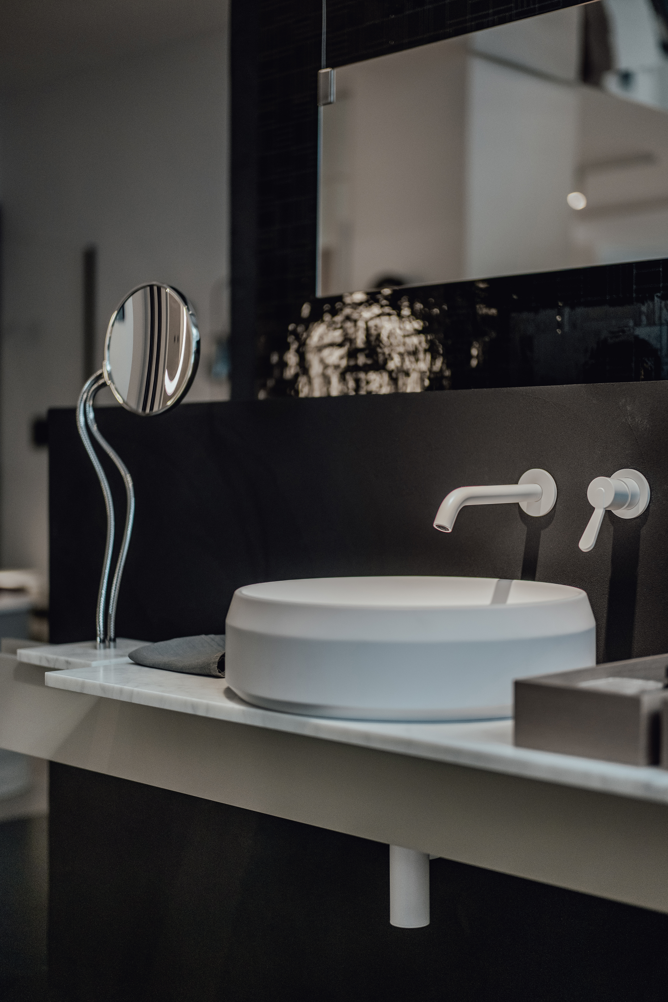 Harmonisches Lariana Waschbecken aus Cristalplant® biobased, Solid Surface oder geschlagen aus einem Block Marmor