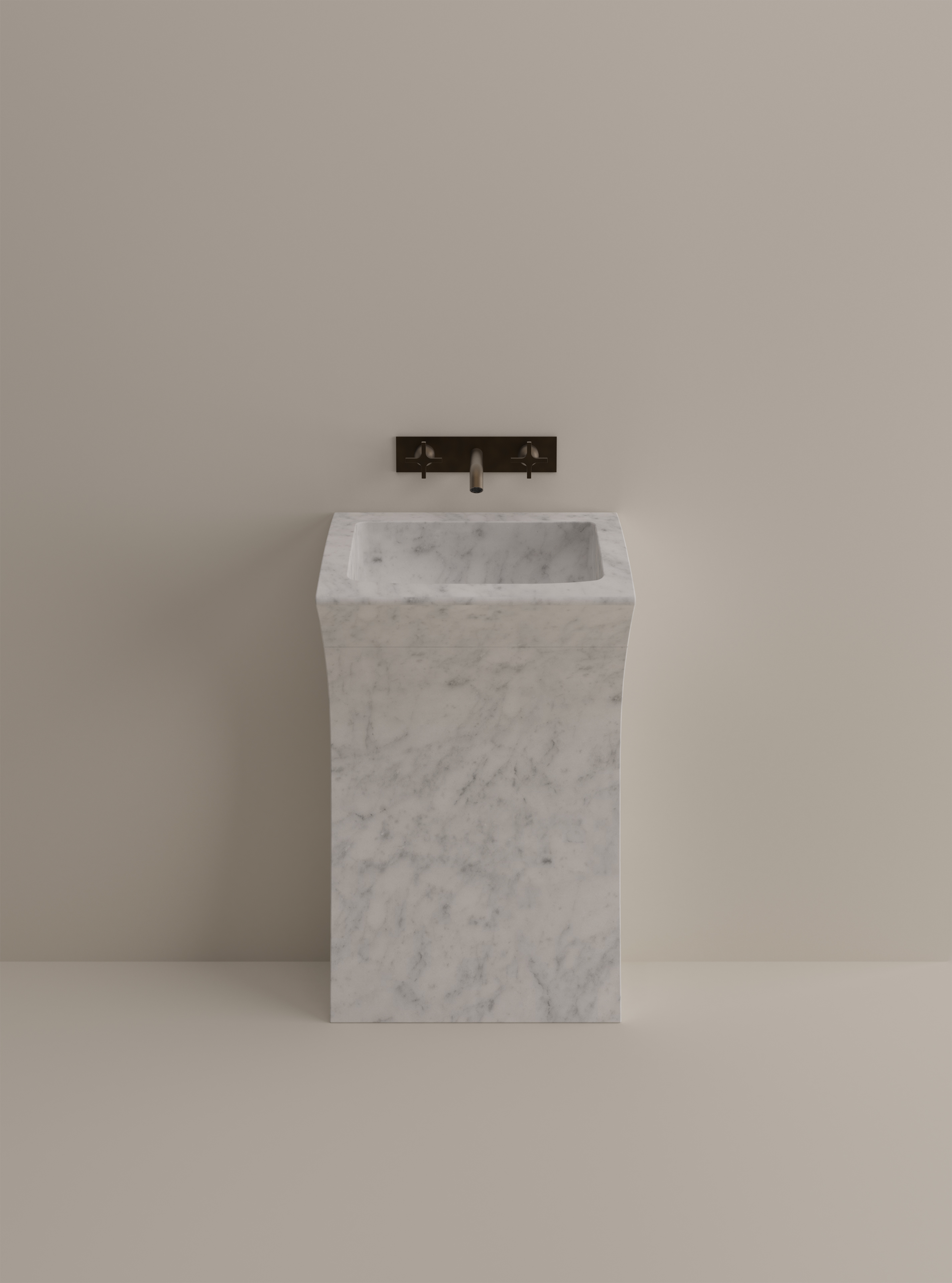 Außergewöhnlicher unkonventioneller Waschtisch Lito 3 geschlagen aus einem Block Carraramarmor